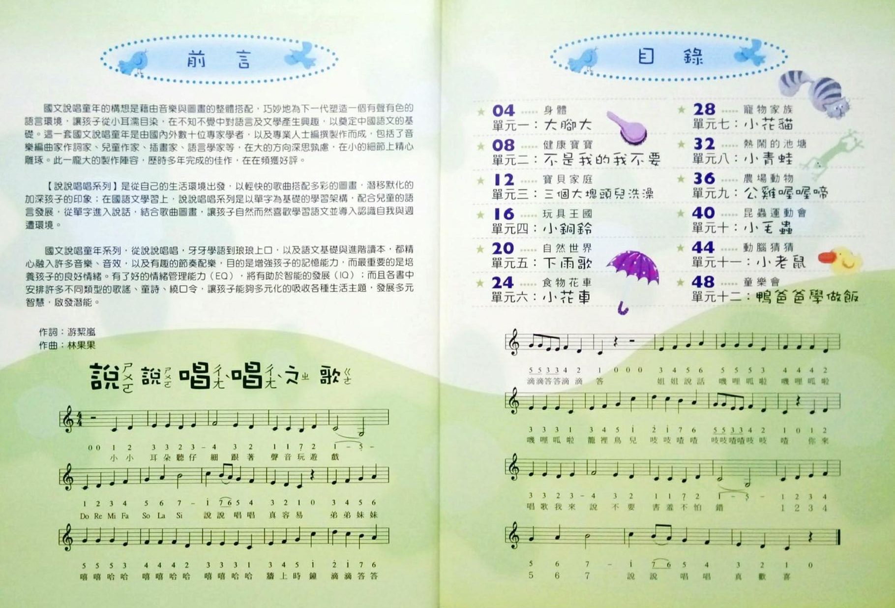 最輕鬆的資優計畫 >>> 最多元的教案主題 >>> 最簡明的教學內容 >>> 最省錢的教育投資 >>> 最科學的教育工具 >>> 最有效的教學方法 >>> 【資優適性課程】 中文說唱童年~歡迎試聽 點擊下方 、圖示、名稱,進入閱覽 前言 說說唱唱1_前言 單元 1~6 單元1__大腳大單元2__不是我的我不要單元3__三個大塊頭兒洗澡單元4__小銅鈴單元5__下雨歌單元6__小花車 單元 7~12 單元7__小花貓單元8__小青蛙單元9__公雞喔喔啼單元10__小毛蟲單元11__小老鼠單元12__鴨爸爸學做飯 結語 說說唱唱1_結語 前言(圖片點讀) https://tat180.com/wp-content/uploads/2022/08/說說唱唱1_前言.mp3 視訊__前言 語言智能:學中文__大腳大(圖片點讀) https://tat180.com/wp-content/uploads/2020/10/ET03A0101.mp3 視訊__單元1__大腳大 學習&遊戲:手 視訊__《手指謠》 #momo 視訊__《Finger Song 手指歌》 視訊__《洗腳歌》 视频__五指歌 视频__手指游戏-大拇哥 视频__身体律动【小手小脚】 视频__早教儿歌《小脚丫》 视频__手指舞【洗脚歌】 视频__手指舞【小脚丫】 视频__启蒙英语【fingers song 】 视频__启蒙英语【Feet Feet Feet 】 视频__启蒙英语【Ten tiny toes】 結語(圖片點讀) https://tat180.com/wp-content/uploads/2022/08/說說唱唱1_結語.mp3 單元 1~6 單元1__大腳大單元2__不是我的我不要單元3__三個大塊頭兒洗澡單元4__小銅鈴單元5__下雨歌單元6__小花車 單元 7~12 單元7__小花貓單元8__小青蛙單元9__公雞喔喔啼單元10__小毛蟲單元11__小老鼠單元12__鴨爸爸學做飯 單元 1~6 單元1__手與頭單元2__大頭單元3__我去找阿姨單元4__小玩偶單元5__雪人單元6__冬瓜冬瓜 單元 7~12 單元7__小狗單元8__蛤蟆蛤蟆跳搭搭單元9__鴨媽媽單元10__螞蟻建築師單元11__四根柱子兩面牆單元12__猜謎歌 單元 1~6 單元1__小狗表演單元2__大卡車單元3__老祖母的牙齒單元4__小朋友鑽橋洞單元5__雷雨單元6__金銀花 單元 7~12 單元7__長頸鹿單元8__鴿子單元9__蝸牛單元10__蝦子單元11__螢火蟲單元12__滑稽歌 單元 1~6 單元1__我的漂亮新衣單元2__猴子頭單元3__兩個姐妹並一排單元4__開火車單元5__音階歌單元6__摘枇杷 單元 7~12 單元7__大象與老鼠單元8__小麻雀單元9__青春舞曲單元10__走路橫跑單元11__身體就像一根針單元12__三個臭皮匠 單元 1~6 單元1__小耳朵單元2__上學去單元3__哥哥妹妹來賽跑單元4__小積木單元5__月亮船單元6__包子 單元 7~12 單元7__小貓咪單元8__大嘴巴青蛙單元9__小鴨子單元10__蝴蝶飛單元11__名字叫馬沒人騎單元12__小板凳 單元 1~6 單元1__看不清單元2__近視眼單元3__祝爸媽生日快樂單元4__馬兒好單元5__看呀看呀天空單元6__油酥麵包 單元 7~12 單元7__小花狗單元8__青蛙的願望單元9__老鼠跌進缸單元10__賽跑單元11__頭插樹枝單元12__過新年 單元 1~6 單元1__猴子穿新衣單元2__刷刷牙單元3__小弟弟單元4__排排坐單元5__大白鵝單元6__大白鵝 單元 7~12 單元7__大象單元8__造飛機單元9__青蛙單元10__烏龜單元11__吐絲搭吊橋單元12__車子 單元 1~6 單元1__小姑娘單元2__洗洗手單元3__拉大鋸單元4__叉叉圈圈單元5__風娘娘單元6__小不點 單元 7~12 單元7__馬車夫之歌單元8__七顆星單元9__插秧單元10__竹葉船單元11__到處吃吃喝喝單元12__三個官人來喝酒 單元 1~6 單元1__眨眨眼單元2__有個小孩愛吃糖單元3__哥哥喜歡把棒球單元4__氣球單元5__唱山歌單元6__王媽媽去買菜 單元 7~12 單元7__貓兒眼像線單元8__我說是,你說不是單元9__兔單元10__小螳螂娶親單元11__一匹馬兒兩人騎單元12__小姐別生氣 單元 1~6 單元1__單元2__單元3__單元4__單元5__單元6__ 單元 7~12 單元7__單元8__單元9__單元10__單元11__單元12__ 單元 1~6 單元1__小珍珠單元2__熨斗和琴鍵單元3__奶奶給我一塊錢單元4__你拉來單元5__颱風夜單元6__隔壁的阿花 單元 7~12 單元7__大象和牠的朋友單元8__噴射機單元9__花花獅少爺單元10__海單元11__蟲兒叫單元12__真稀奇 單元 1~6 單元1__灰姑娘單元2__登山單元3__爺爺要趕車單元4__繞口令單元5__樂器們的晚會單元6__蘭花草 單元 7~12 單元7__小馬吃草單元8__快樂的四季單元9__愚公移山單元10__小白船單元11__紅蘋果的小屋單元12__劉老頭兒 單元 1~3 單元1__注音符號大集合單元2__聽聲音看圖認符號─聲符篇單元3__聲符家族大集合 單元4~7 單元4__聽聲音看圖認符號─韻符篇單元5__韻符家族大集合單元6__注音符號捉迷藏大賽單元7__注音符號聲調練習 單元 1~7 單元1__小畫家單元2__賣蘿蔔單元3__小白鴿單元4__小姐姐單元5__快快來單元6__玫瑰花單元7__稻草人 單元4~7 單元8__劉老頭單元9__小帆船單元10__春神到單元11__紡織娘單元12__螢火蟲單元13__小雨滴單元14__老漁翁