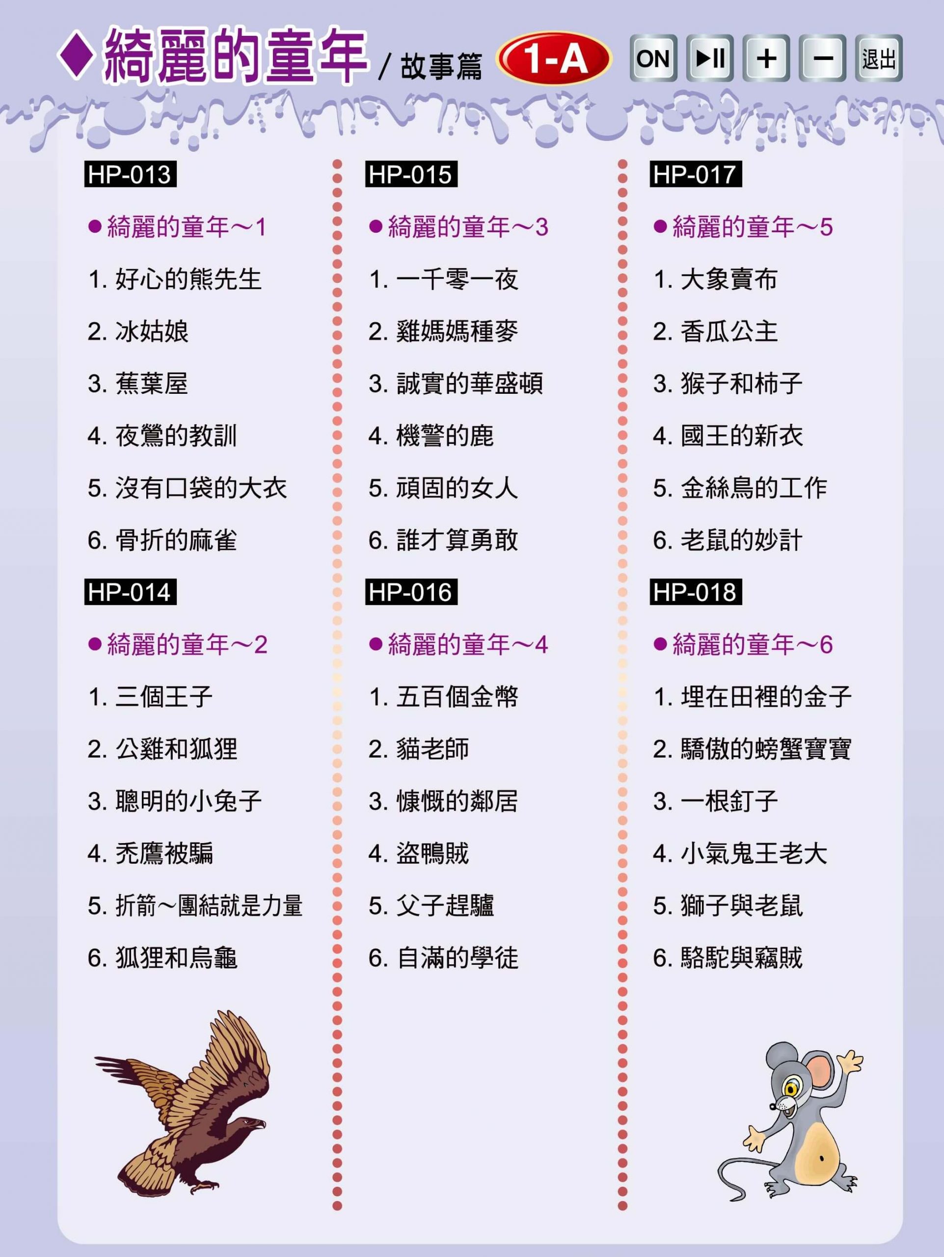 最輕鬆的資優計畫 >>> 最多元的教案主題 >>> 最簡明的教學內容 >>> 最省錢的教育投資 >>> 最科學的教育工具 >>> 最有效的教學方法 >>> 【ET-04點讀卡】 綺麗的童年故事~歡迎試聽 點擊下方 、名稱,進入閱覽 綺麗的童年故事1-A(圖片點讀) 熱點顯示 / 隱藏
